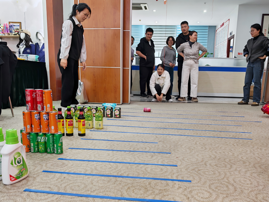 除了智力的角逐,現(xiàn)場(chǎng)還設(shè)置了游戲區(qū)。精美禮品整齊排列,員工們瞄準(zhǔn)自己心儀的物件進(jìn)行滾落投擲。大家不僅收獲了驚喜小禮物,更在歡聲笑語(yǔ)中釋放了工作壓力。